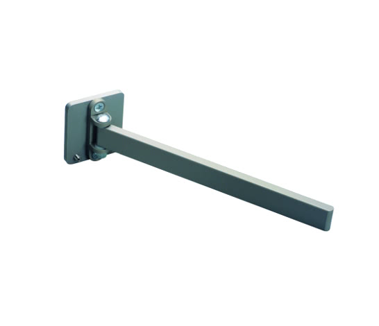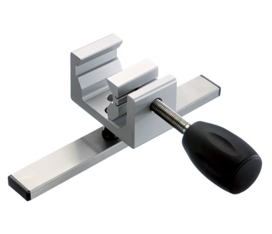 Rail clamp, for attachment to poles of different diameters. Rotable by 90° to left and right. Length of standard rail (profile 10 × 25 mm):