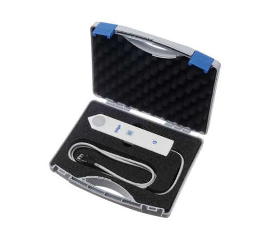 The optional BiliLux Radiometer is specifically designed for the phototherapy light and instantly measures the irradiance. Use of the radiometer helps ensure the correct positioning of the baby under the phototherapy light and the adequate irradiance that the baby receives. In addition, each measurement (incl. date and time) and the phototherapy duration can be stored and downloaded in a phototherapy report e.g. for patient documentation or quality control purposes.