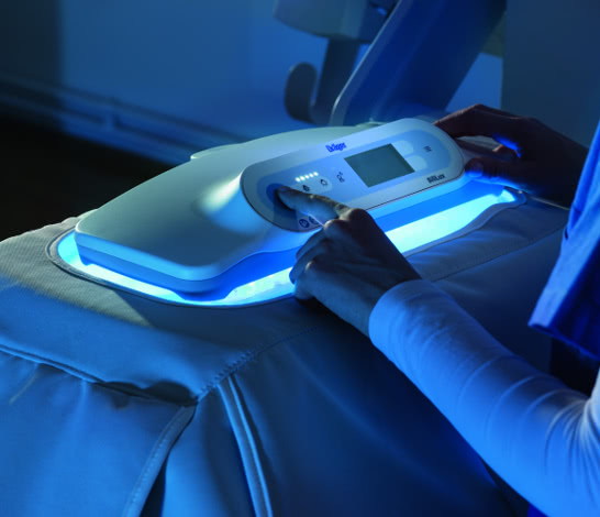 The BiliLux phototherapy light was designed for flexible use and seamless integration into the neonatal workplace. The phototherapy light can be placed on an incubator hood, mounted with the spring arm to warming therapy devices or ceiling supplies or used with a trolley. The BiliLux offers the perfect combination for practically every workplace. To simplify the process, the phototherapy light can be easily locked and unlocked by using the intuitive quick-connect mechanism.